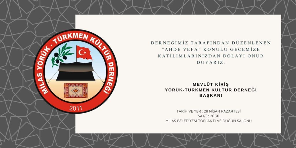 Milas Yörük Türkmen Kültür Derneği, bu anlamlı gecede tüm Milas halkını bir araya gelmeye ve kültürel değerlerimizi birlikte yaşatmaya davet ediyor.