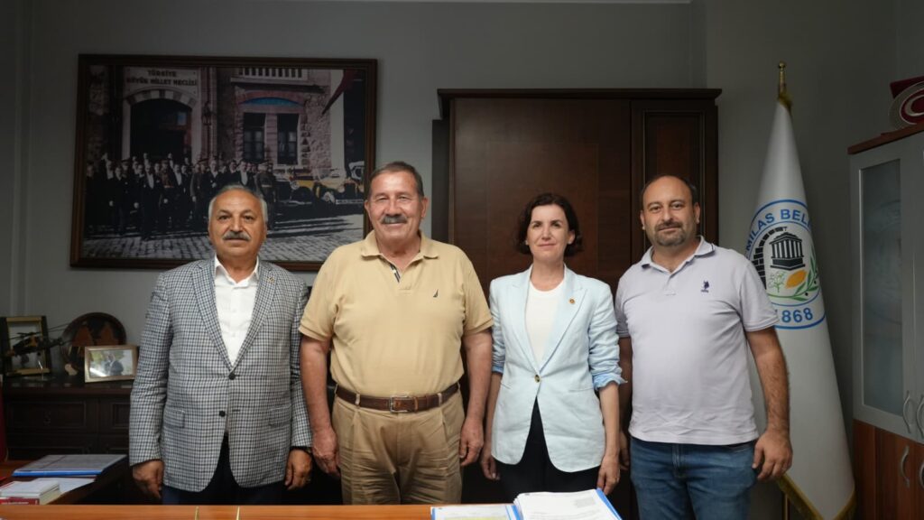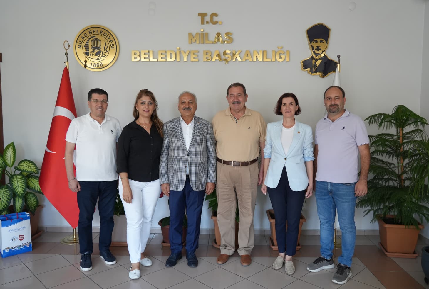 Muğla’nın ilçelerinde saha çalışmaları gerçekleştirmek üzere Milas’a gelen CHP Antalya Milletvekili Aliye Coşar ve CHP Mersin Milletvekili Talat Dinçer, Milas Belediye Başkanı Fevzi Topuz’u makamında ziyaret etti.