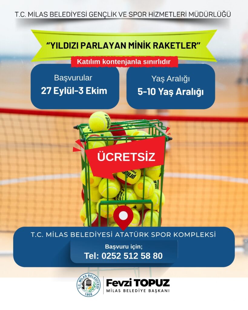 Milas Belediyesi Atatürk Spor Kompleksi’nde, Gençlik ve Spor Hizmetleri bünyesinde görevli uzman eğitmenler tarafından verilecek kurslarda çocuklar, hem eğlenerek hem de öğrenerek tenisle tanışacak. Katılımın ücretsiz olduğu kurslarda kontenjan sınırlı tutulacak.