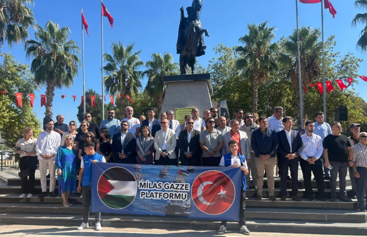 - Muğla’nın Milas ilçesinde, Gazze’de süren insani krize dikkat çekmek ve Sumud Filosu’na destek vermek amacıyla Atapark Meydanı’nda basın açıklaması düzenlendi. Milas Gazze Platformu öncülüğünde gerçekleşen etkinliğe Milas Kaymakamı Mustafa Ünver Böke, Milas Belediye Başkan Yardımcısı Ali Özgür, AK Parti Milas İlçe Başkanı Duygu Pınar Marçalı Doğru, MHP Milas İlçe Başkanı Tunahan Ongün, kurum yöneticileri, belediye meclis üyeleri, vatandaşlar ve öğrenciler katıldı.