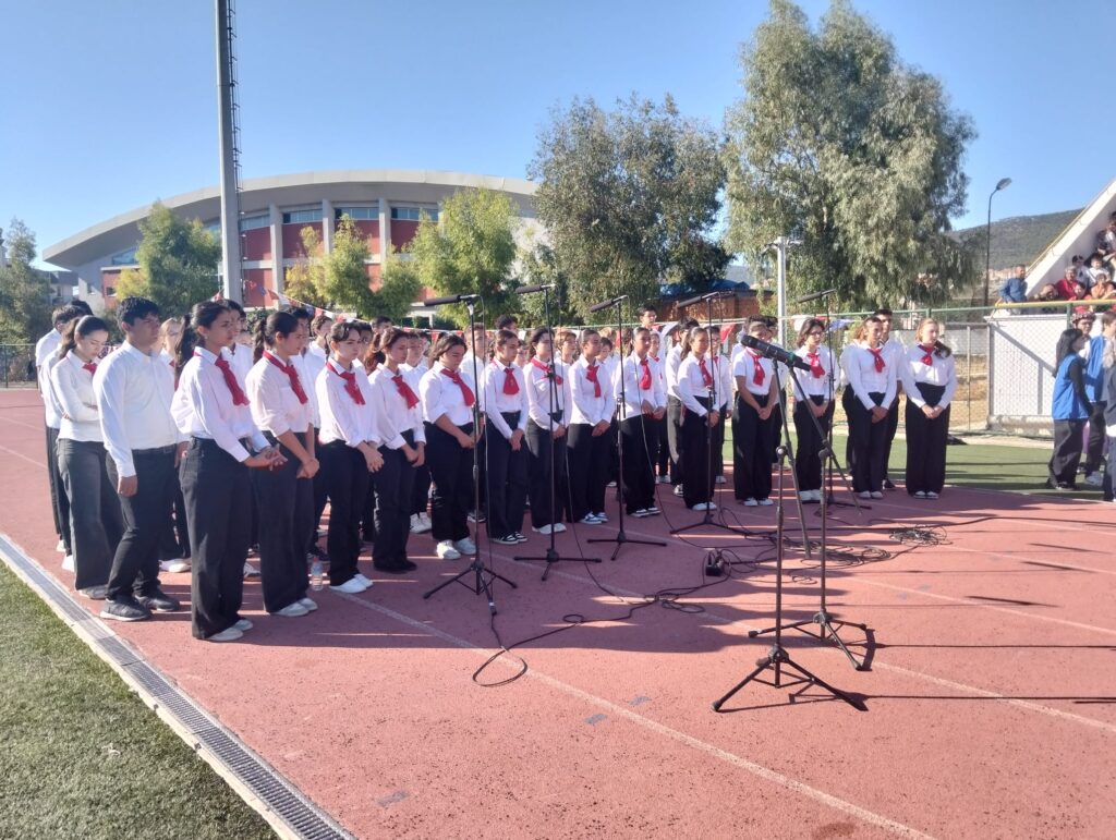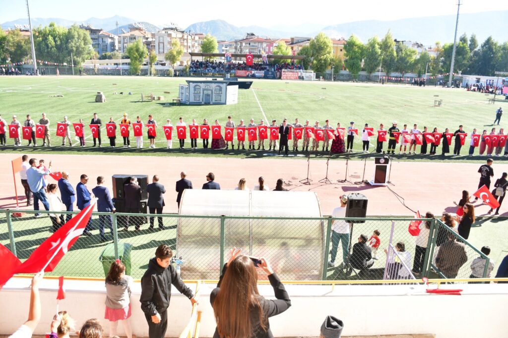 Cumhuriyet’in 102. yılı anısına 102 öğretmen ve öğrencinin birlikte sahne aldığı zeybek gösterisi ise törenin en çok alkış alan anlarından biri oldu. Etkinlik, bando takımı eşliğinde gerçekleştirilen resmî geçit töreniyle sona erdi.