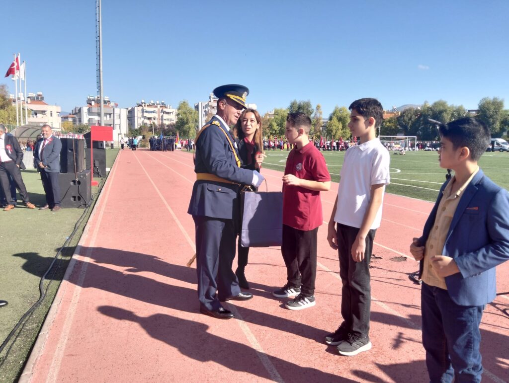 Törende ayrıca 29 Ekim Cumhuriyet Bayramı’na özel düzenlenen yarışmalarda dereceye giren öğrencilere ödülleri, Kaymakam Böke, Garnizon Komutanı Macar ve Belediye Başkanı Topuz tarafından takdim edildi.