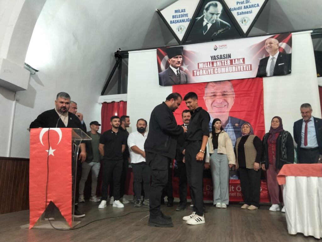 Zafer Partisi’nde Türkiye genelinde süren üye katılımları, Milas’ta düzenlenen törenle devam etti. Yeni üyelere rozetlerinin takdim edildiği program, Prof. Dr. Aşkıdil Akarca Salonunda gerçekleşti.