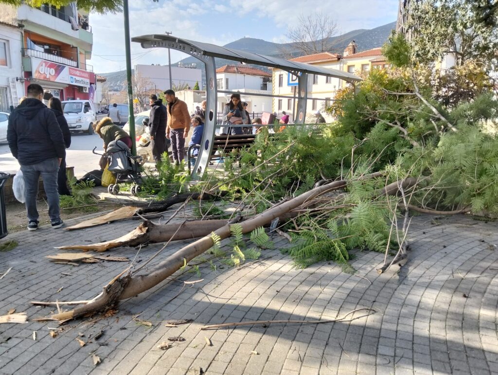 Muğla’nın Milas ilçesinde etkili olan şiddetli rüzgâr, ilçe merkezinde bulunan Üç Fidan Parkı’nda tehlikeli anların yaşanmasına neden oldu. Park içerisindeki bir ağacın dalı, rüzgârın etkisiyle kırılarak parkta bulunan vatandaşların üzerine düştü.